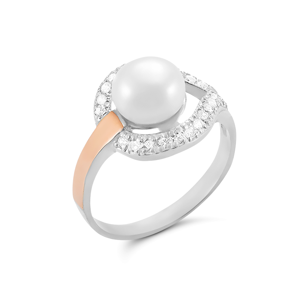 Sidabrinis žiedas su perlu ir cirkoniais - Sidabriniai žiedai - Goldinga