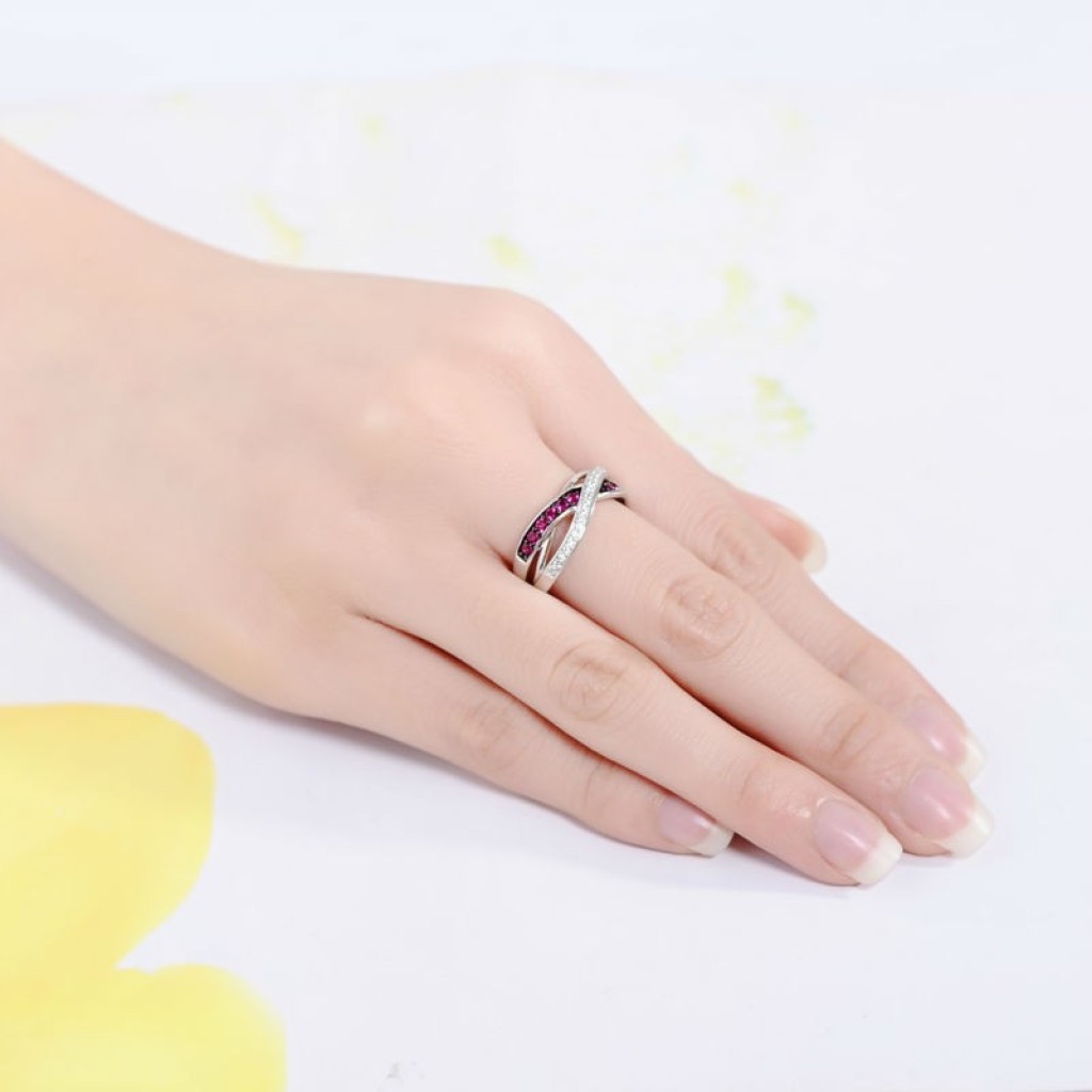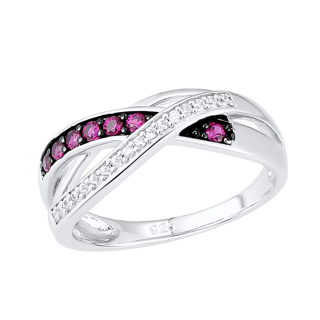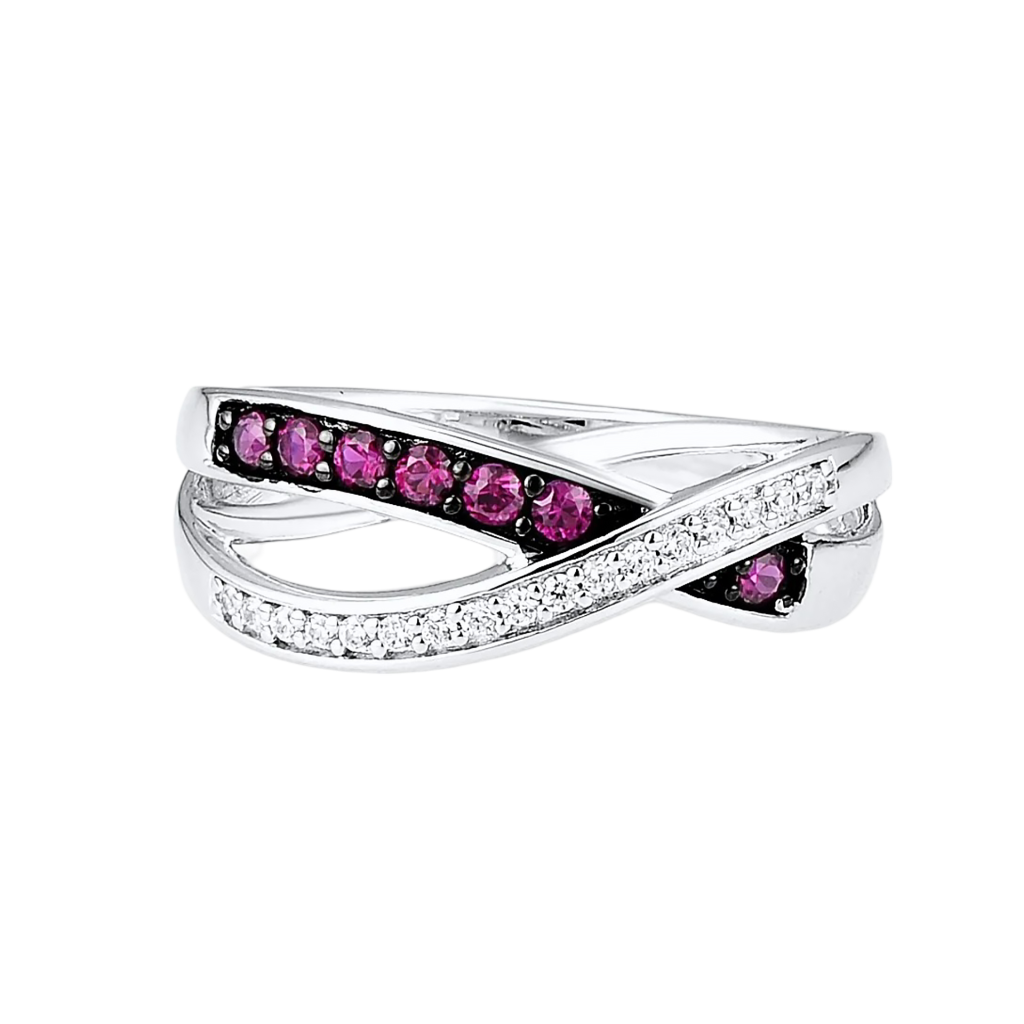 Sidabrinis žiedas su cirkoniais ir nano rubinu