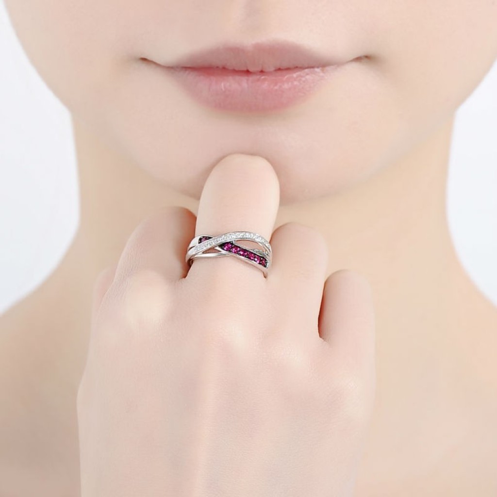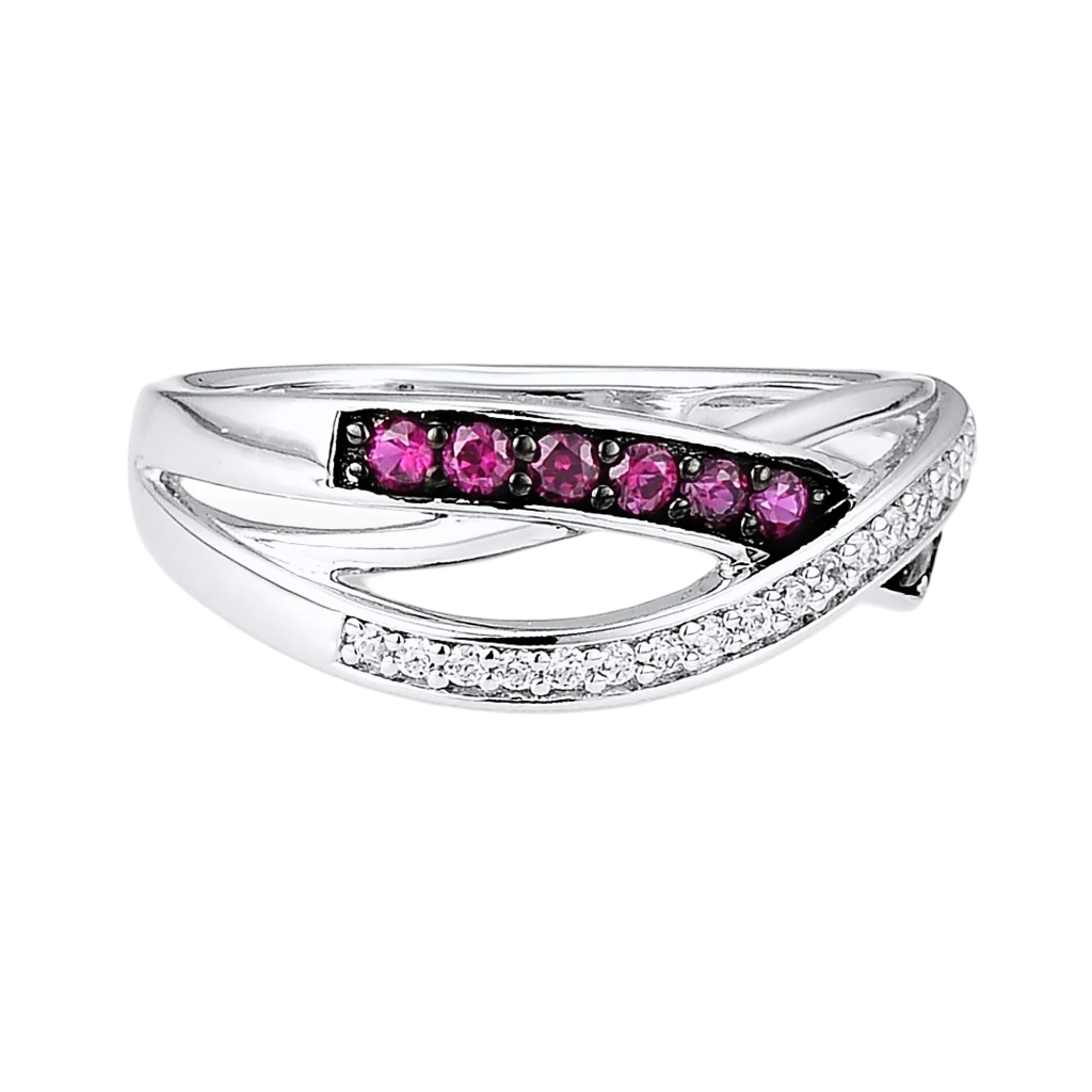Sidabrinis žiedas su cirkoniais ir nano rubinu - Sidabriniai žiedai - Goldinga