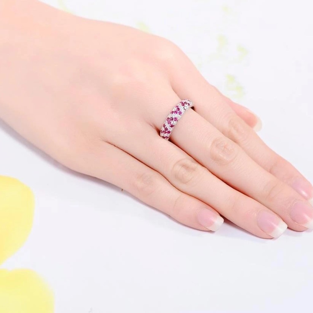 Sidabrinis žiedas su cirkoniais ir nano rubinu - Sidabriniai žiedai - Goldinga