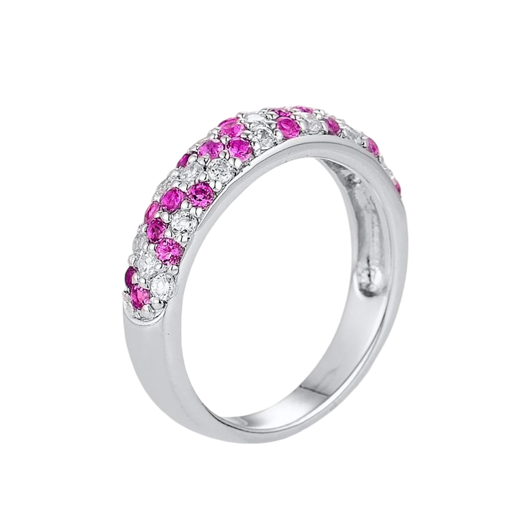 Sidabrinis žiedas su cirkoniais ir nano rubinu