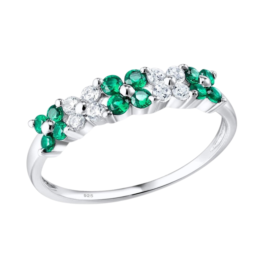 Sidabrinis žiedas su cirkoniais ir špineliais