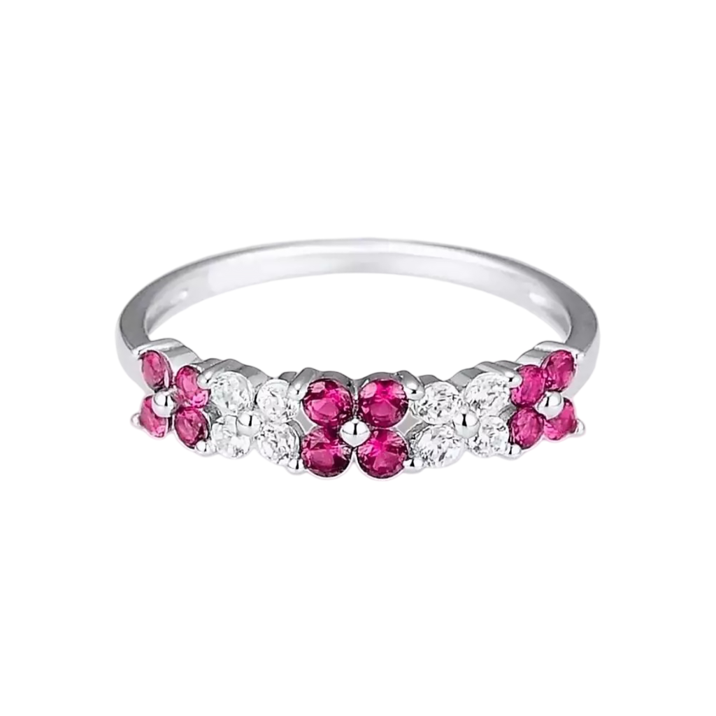 Sidabrinis žiedas su nano rubinais ir cirkoniais