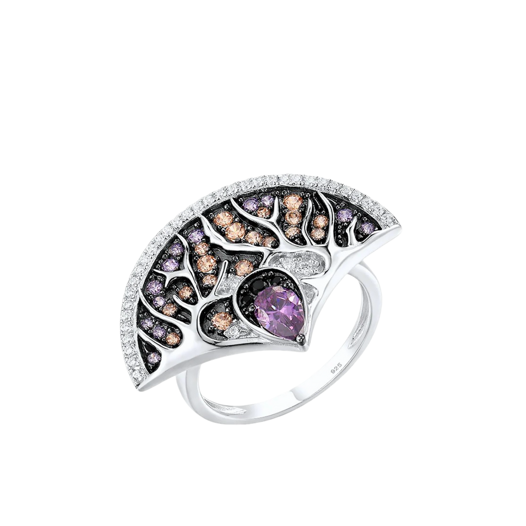 Sidabrinis žiedas su cirkoniais ir ametistu