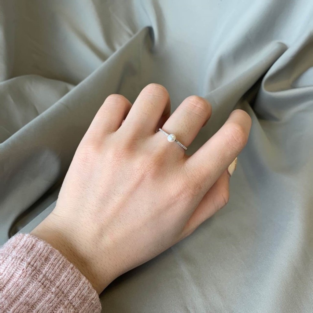 Sidabrinis žiedas su cirkoniais ir perlu - Sidabriniai žiedai - Goldinga