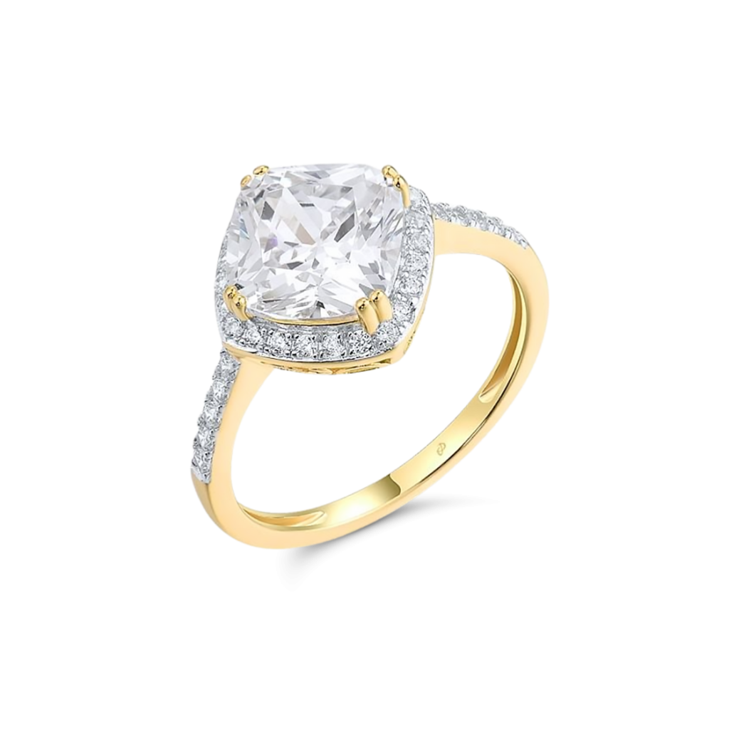Paauksuotas sidabrinis žiedas su cirkoniais - Sidabriniai žiedai - Goldinga