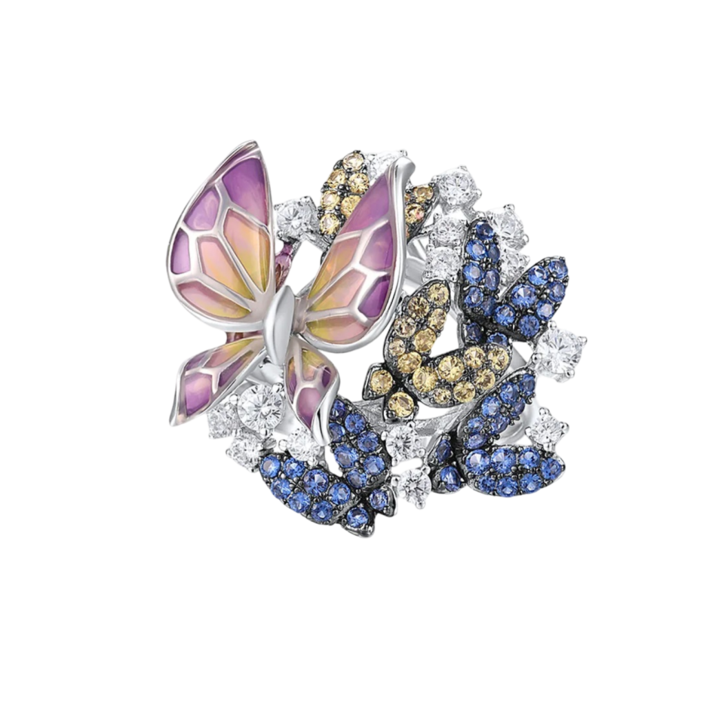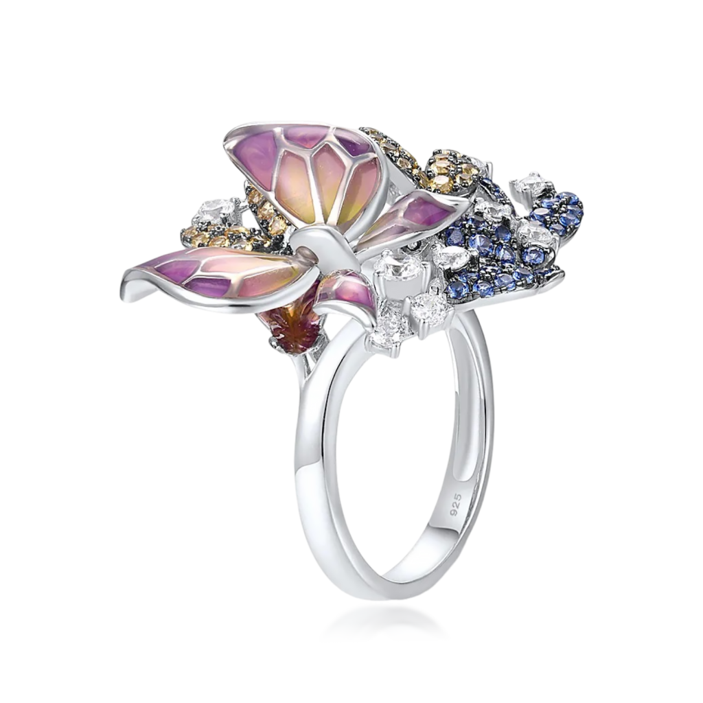 Sidabrinis žiedas su emale ir cirkoniais